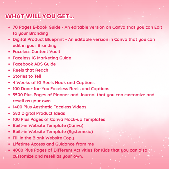 Unlock the power of digital products with this comprehensive Done for You Digital Products Blueprints! This all-in-one product helps you have an extra income while working. Whether you’re looking to launch your digital products, build a brand, or get started with faceless marketing, this guide provides everything you need.
